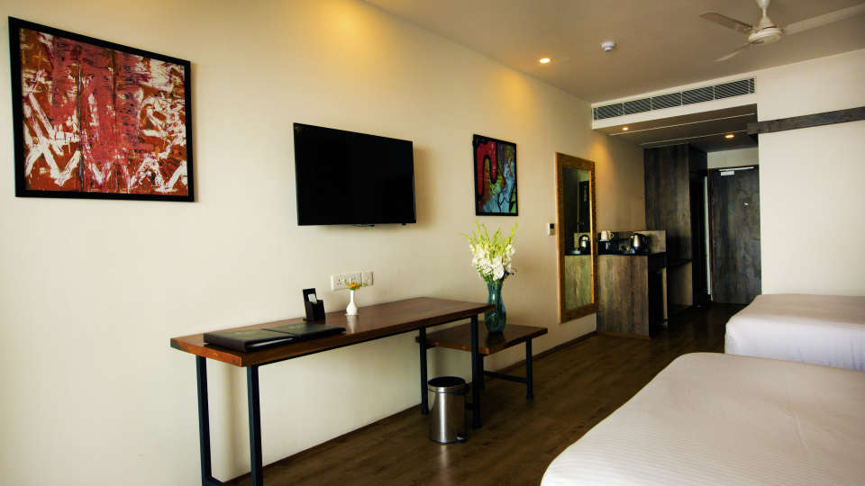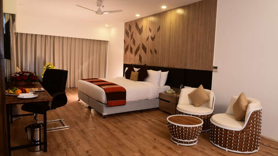 Imbibing the contemporary style of living, the Terraces adorned the Super Deluxe Room with a sense of comfort. The elegant décor, plush beddings, King and Queen Size beds; all make your staying experience pleasant. In the Super Deluxe Rooms, you can enjoy some time in solace sitting at the swing chair overlooking the enigmatic views of the Shivalik ranges.